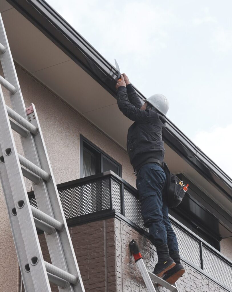 当社は雨樋修理の専門業者として、日々たくさんの現場で作業しており高所作業に精通したプロ集団です。ご自身でやられて、少しでも危ないなと感じた場合、私たちにお任せください。