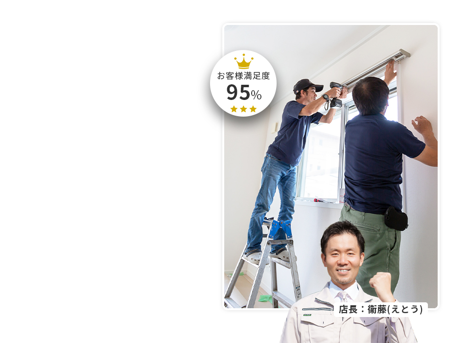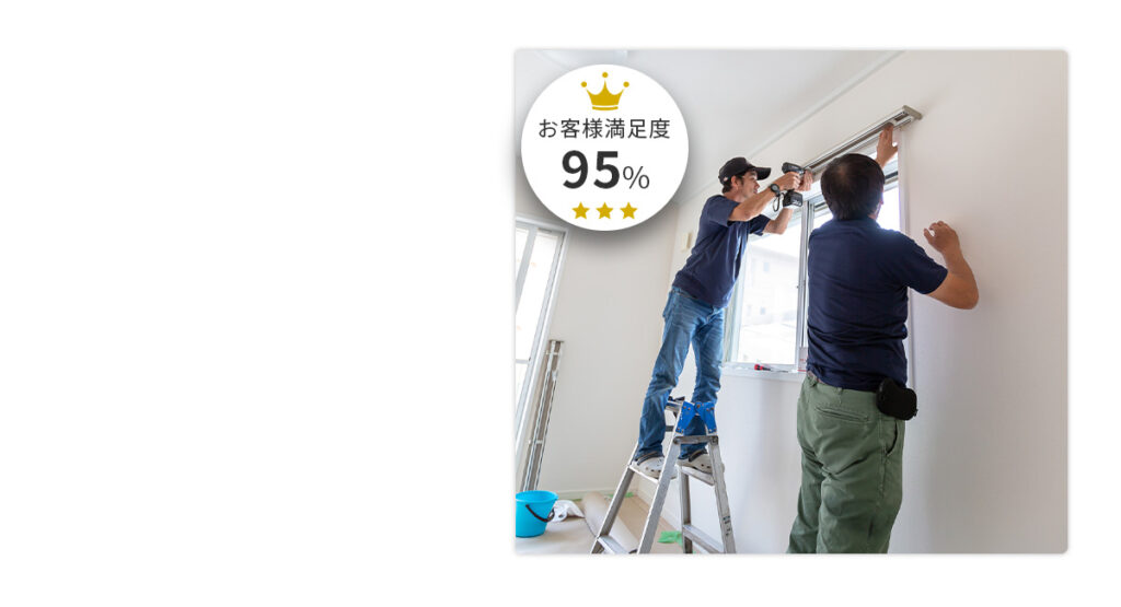 カーテンレールの取り付けを請け負う業者は数多くありますが、「見積が予想より高かった」「工事日程がなかなか合わなかった」など、想定外の不便に悩む方も少なくありません。当社では、確かな技術を持つ職人を直接派遣し、コスト面とスケジュール対応の両方を満たした、安心・丁寧な施工をお約束いたします。