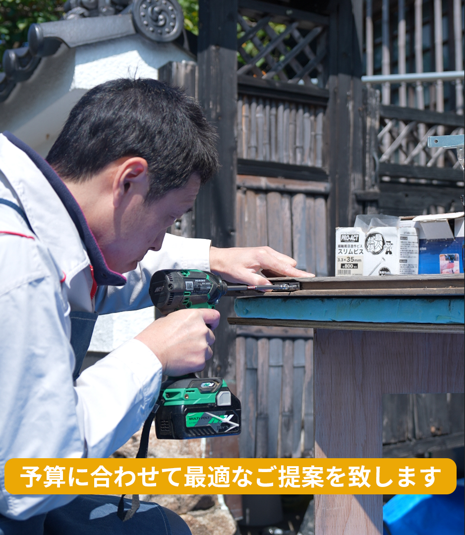 「誰に頼めばいいか分からない、お家のちょっとした修理」に職人が素早く丁寧に対応します。